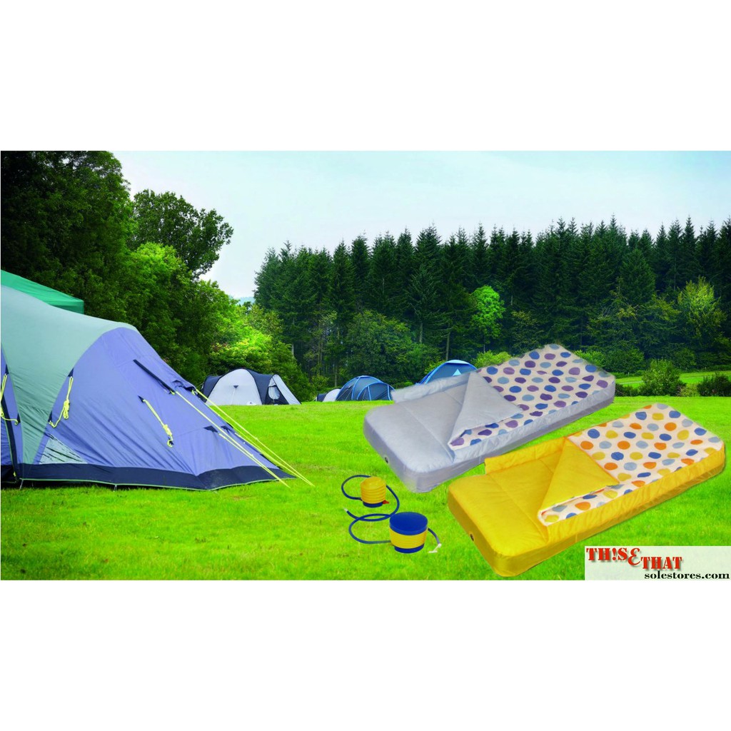 Outdoor inflatable single mat camping sleeping pad air mattress new air bag. An air mattress is an inflatable mattress/sleeping pad. A sleeping bag is a protective bag for a person to sleep in, essentially a blanket that can be closed with a zipper or similar means, and functions as a eddie is right — i do have a future as a sleeping bag model! Not sure if this air mattress can be for everyday (long term) use? Our camping mattresses, sleeping bags & air beds will help you sleep comfortably whilst camping! The air comfort camp mate queen air mattress is designed for camping and outdoor use. Another advantage of choosing a sleeping bag over its famous competition, the air mattress, is that a sleeping bag does not deflate as opposed to an air mattress. It is the narrowest of the 3 air beds on our list. By narrow i mean really narrow. Outsunny portable camping cot set sleeping bag, inflatable air mattress 2 person. Buy products such as coleman illumi 45 f rectangle sleeping bag at walmart and save. Discover the best kids' air mattresses in best sellers. These air mattress sleeper sofa reviews will enlighten you to the world of affordable and portable sleeping solutions.